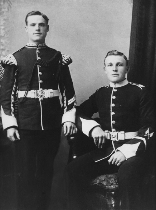 Albert Edward RACKSTRAW (left) and his foster brother, Herbert WINNE in Oxfordshire & Buckinghamshire Light Infantry, circa 1900-1905