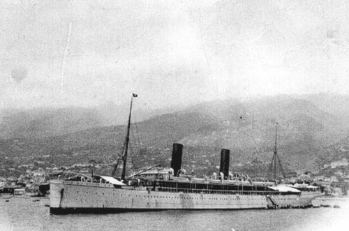 During the Boer War, Alfred TRAFFORD sailed on the Royal Mail Steamship ‘Saxon’ on her maiden voyage in June 1900. This photo shows the ship four days out of Southampton, off Madeira.