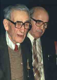Frederick Thomas McMULLIN with his son arriving at his 100th birthday party, having watched Bridgend Rugby Club beat Cardiff. he had been presented with the ball on the pitch after the game.