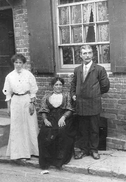 James McMULLIN in front of 1 Alfred Street, Wantage with his wife Harriet (née FROUD) and their second daughter, Catherine Lillian.