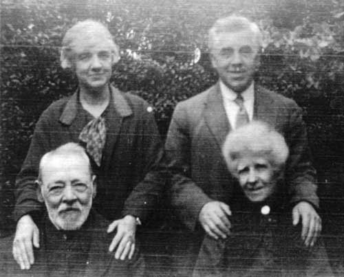 Clockwise from bottom right: Philadelphia BRADLEY, née HIORNS, husband Walter BRADLEY, daughter Minnie and son William, probably at 42 Cambridge Road, Kings Heath, Birmingham