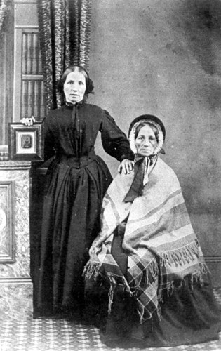 Sarah WOODWARD (née SLATYER) shown seated with Jane WOODWARD, who is standing holding what may be a photograph of her son Harry who died of diphtheria aged 5 in 1861.
